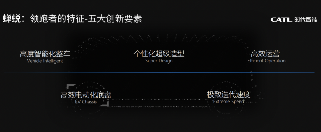 這五個要點是我們看到當今產業內成功者的核心要素。寧德時代在電池產業裡面,在賦能全球企業更好、更快地推進電動化進程中,我們能做什麼。如果產業和客戶想要實現剛才那五個要點,我們從電池技術和底盤系統效率上能否做一些工作?