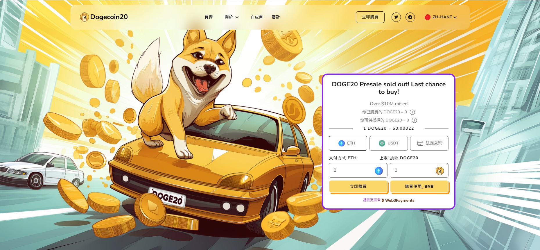 DOGE20預售正在快速進行中,已募集超過1,000萬美元,目前價格僅為0.00022美元1枚,在4月20日上市前抓住這千載難逢的機會,成為這一創新迷因幣成長路上的一份子!