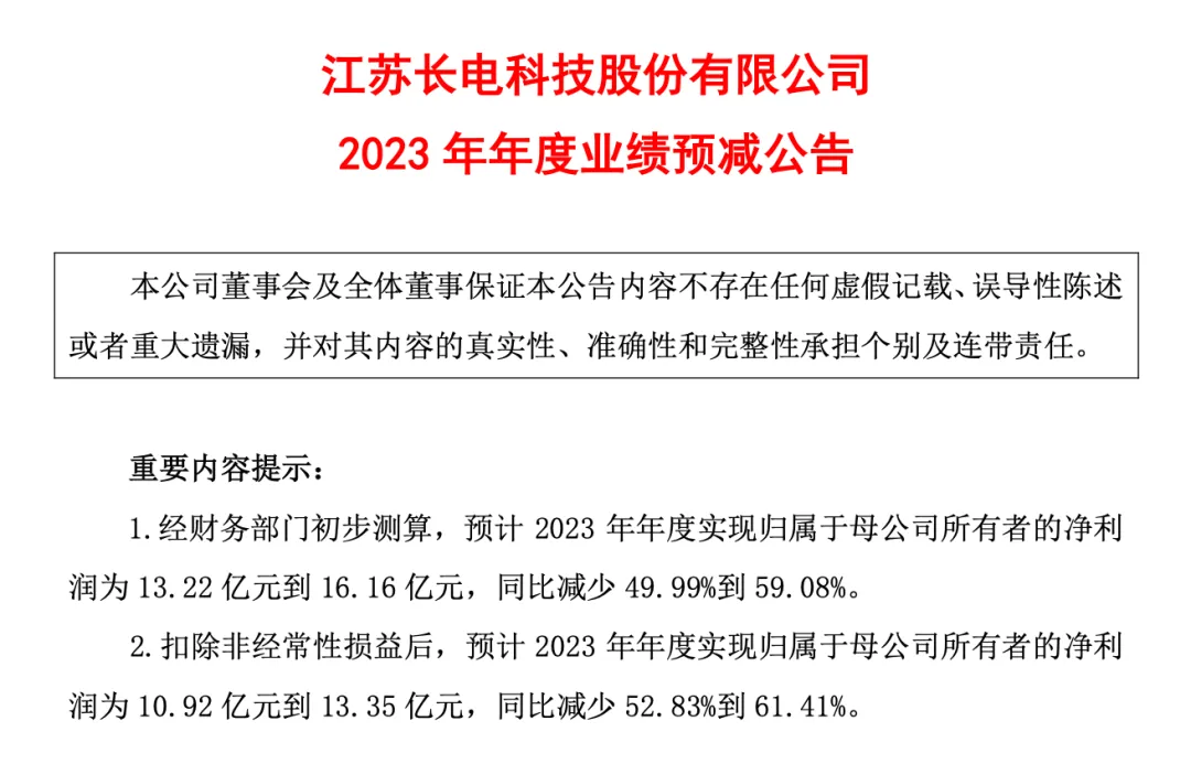 不過,長電科技2023年全年業績年減,較2023年上半年業績年減幅度有所減緩,2023年下半年部分客戶需求有所回升,2023年第四季訂單總額恢復到2022年同期水平。