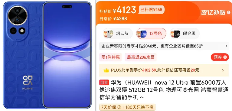 那你可能沒關注華為nova 12 Ultra 這款手機,它搭載的是麒麟9000SL(暫定名),目前512GB 只要4300 元左右。