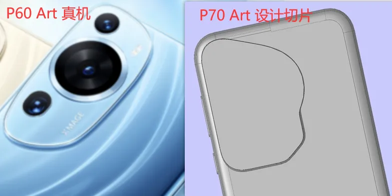 而頂配的P70 Art 版本(暫名)設計就更「抽象」了,是不規則的多變形設計。