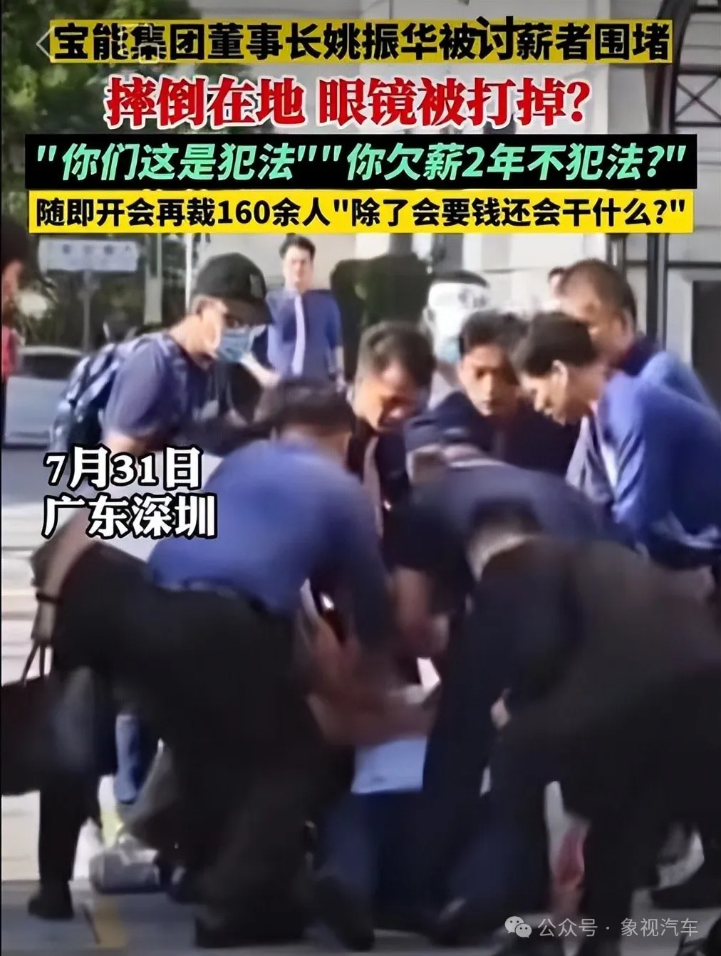 2023年7月份,姚振華遭到前寶能汽車員工的圍堵討薪,甚至被圍毆。