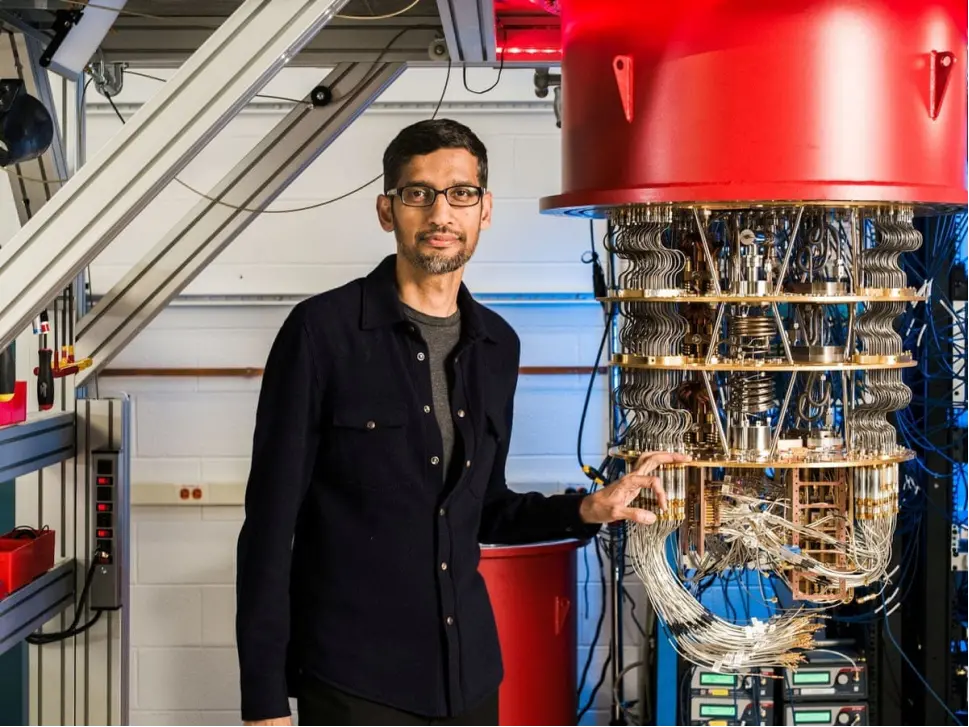 2019 年,谷歌首席执行官 Sundar Pichai 与量子计算机