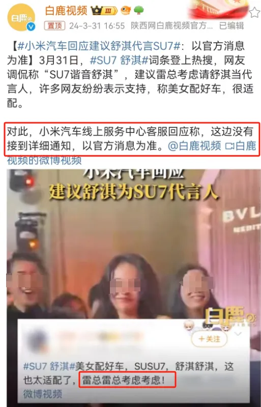 這兩天網友瘋傳著一個消息:舒淇代言小米SU7,問原因就是兩點: