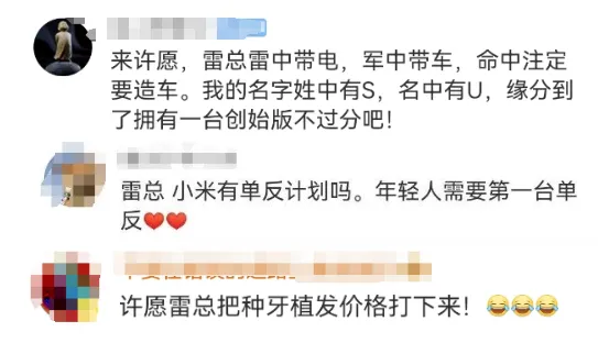 網友拿出了「你一句我一句,雷軍還能在創業一次」的熱情,向雷軍發願: