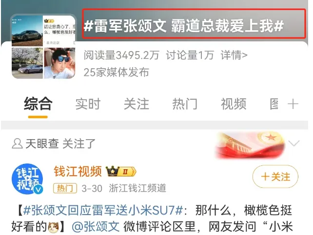 試想一下,如果雷軍只是自嗨喊話給張頌文送一輛車,行銷效果肯定減半,霸總式行銷給全網增加很多看點笑話。