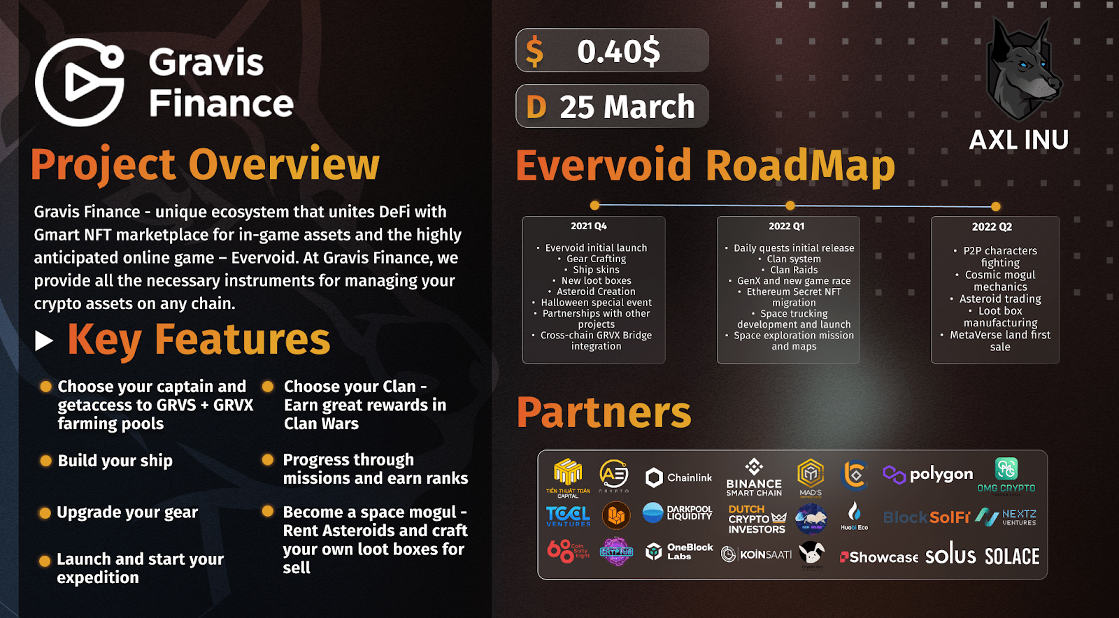 AXL榮幸地宣佈,Gravis Finance (GRVS) IDO將於2022年3月25日格林尼治標準時間下午12:00 在 AXL 發行平台開始運作。 參與者將有機會取得IDO代幣。