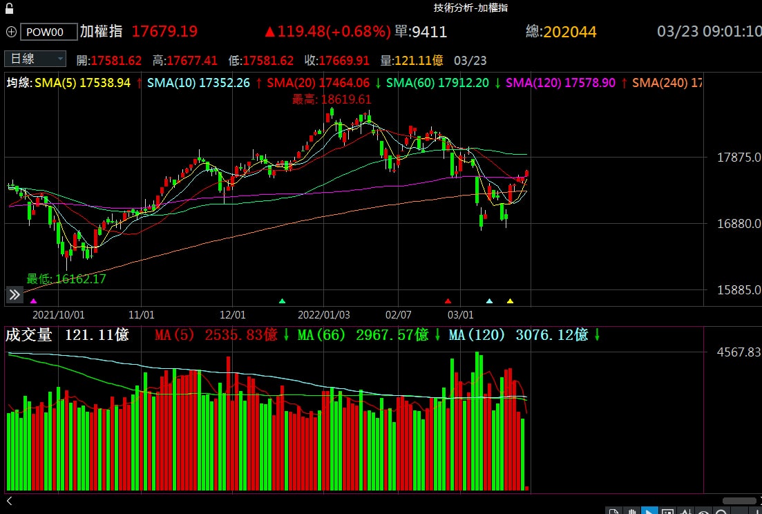 李聖庭:3.23今日大盤走勢解析 及個人投資看法 烏俄持續進行談判中,但西方對俄羅斯的經濟制裁,造成近期國際股市震盪加劇
