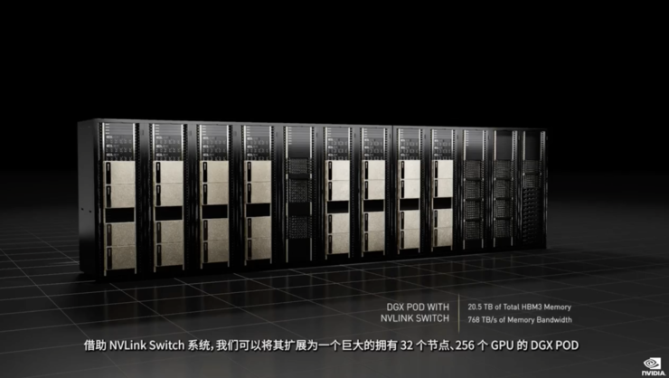 576個DGX H100系統能夠構建一台全球運行速度最快的AI系統,少量的DGX SuperPOD 單元組合,也可以為汽車、醫療健康、製造、通信、零售等行業提供開發大型模型所需的AI 性能。