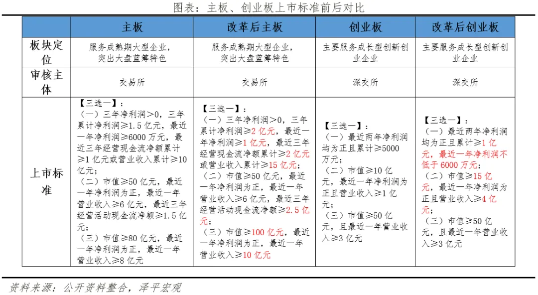新「國九條」從進一步完善發行上市製度、強化發行上市全鏈條責任、加大發行承銷監管力度三方面發力。 4月12日,滬深交易所就《股票發行上市審核規則》徵求意見,提高上市條件。例如,最近3年累計淨利指標從1.5億元提升至2億元,最近一年淨利指標從6,000萬元提升至1億元。