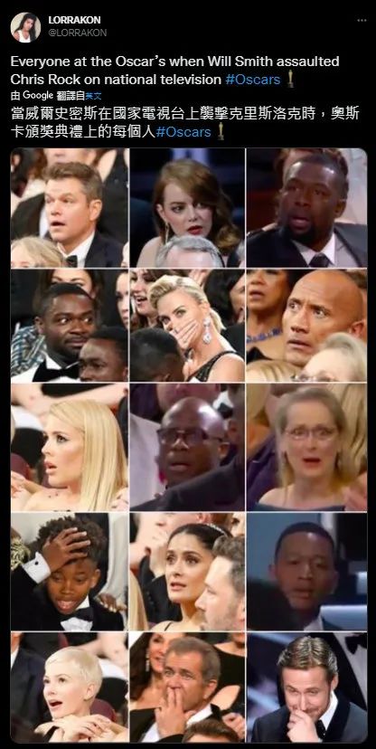 在奧斯卡頒獎典禮上,喜劇演員克里斯·洛克在介紹最佳紀錄片獎時,拿威爾·史密斯妻子開了一個玩笑,這位演員衝到台上掌摑洛克,這顯然並非事先編排的場面震驚了所有觀眾和在場嘉賓。