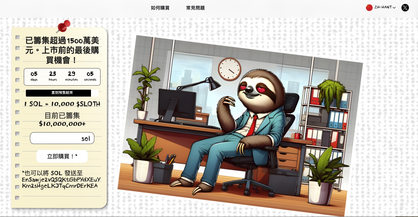Slothana ($SLOTH)是一種基於Solana新迷因加密貨幣,正在吸引大量投資者的關注。與傳統的預售活動不同,Slothana 允許投資者直接將 $SOL 發送到項目的錢包位址,以換取 $SLOTH 空投。這種獨特方法簡化投資流程,且無需分層定價或計時器。