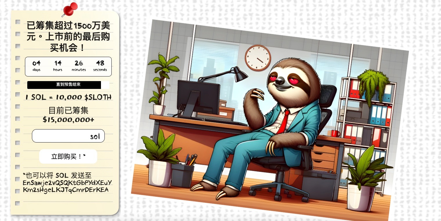 同樣熱門Meme幣Slothana也期待交易所啟動,目標在超大規模的預售結果之後。