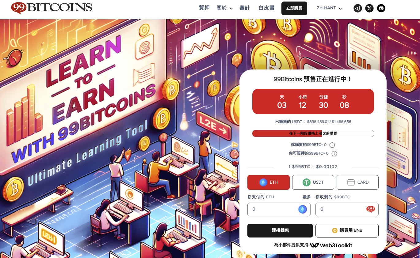 而比特幣教育平台 99Bitcoins 則選擇進軍「玩賺」(Learn-to-Earn)領域,推出新的 L2E 代幣 $99BTC,設計用於獎勵學習比特幣知識的用戶。比特幣教育平台 99Bitcoins 令人興奮地轉向學習賺錢(L2E)領域,這是一個備受炒作的機會。99Bitcoins 制作課程來幫助投資者邁出進入加密貨幣領域的第一步。目前在校學生超過 10 萬名。