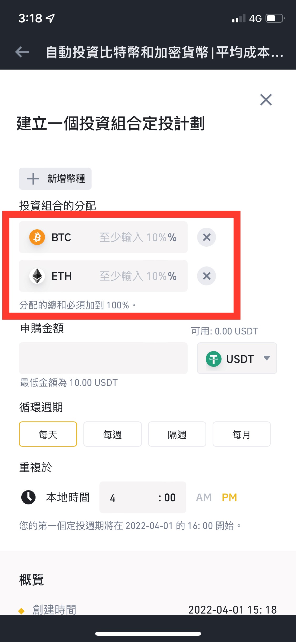 定投計畫有兩種模式,(1)投資組合定投(2)單一幣定投