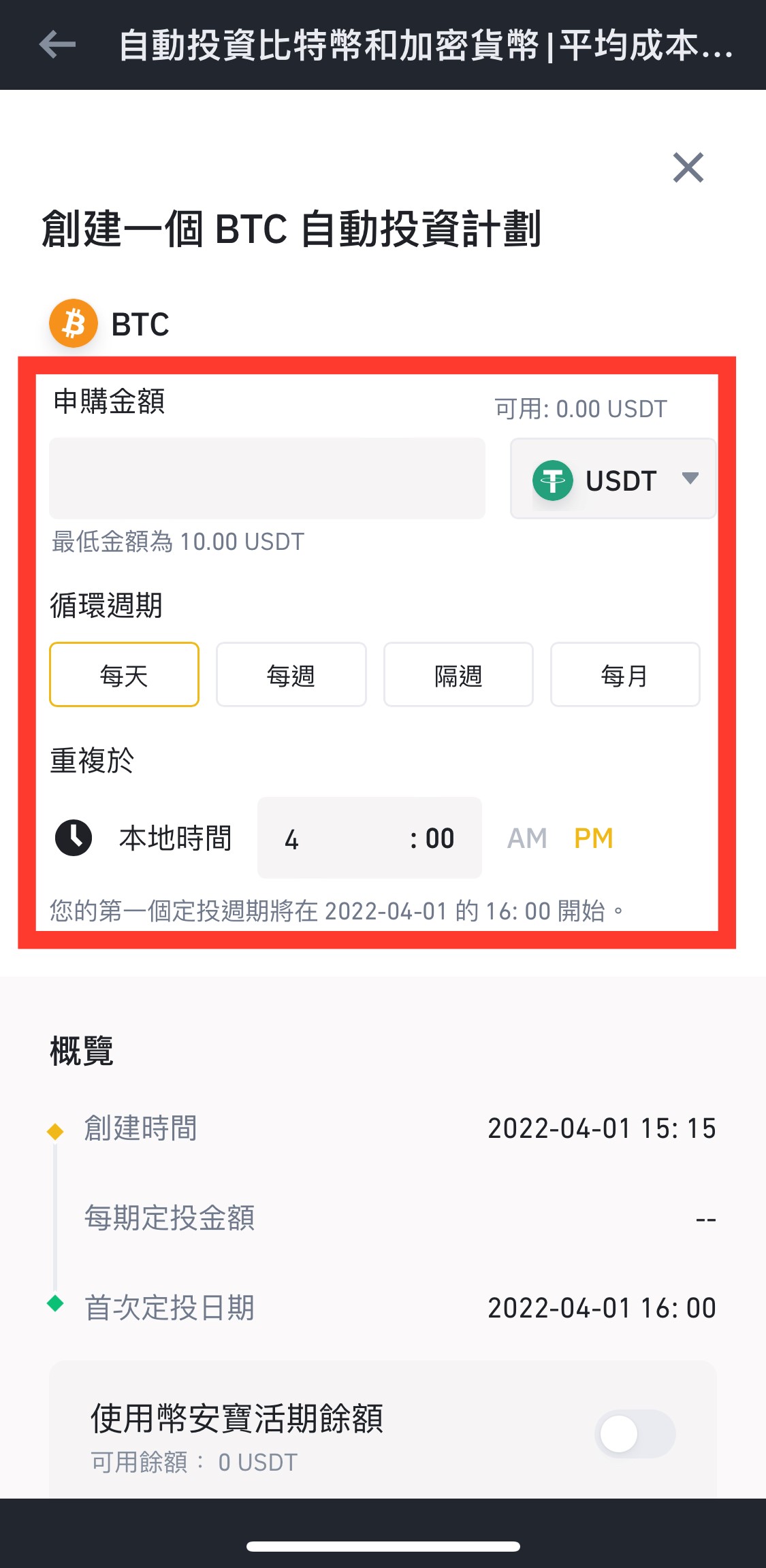 大功告成,只要簡單幾個步驟就可以實現定期存幣的投資計畫!