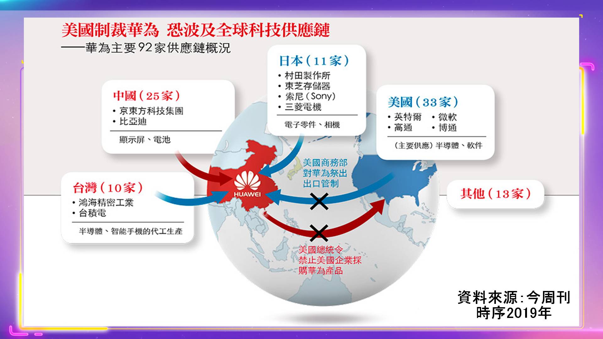 2018年華為全球總採購金額高達7百億美元,涉及的全球供應鏈有1萬3000家之多,衝擊最大的是半導體產業。華為是三星、蘋果之後,全球第3大的半導體採購買家。