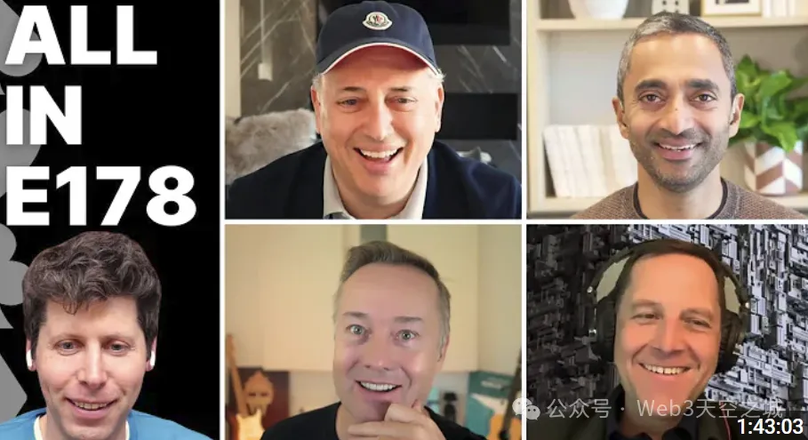 在5月11號的著名投資人播客All-In Postcast訪談中,OpenAI的執行長Sam Altman深入探討了人工智慧的發展現狀和未來趨勢。這次訪談的主持人們水準確實很高--都是資深科技業投資人,頻頻出台的Sam這次算是聊出了不少新內容:)