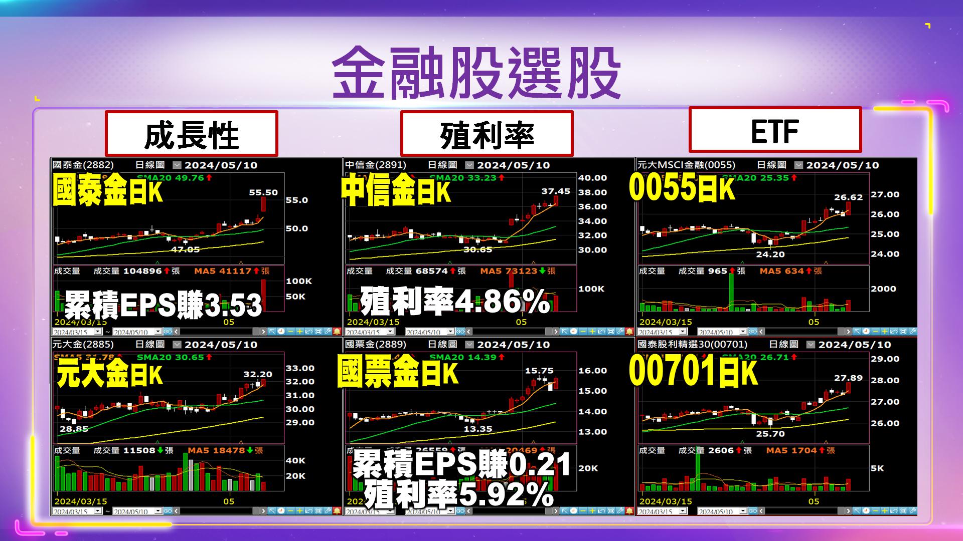 凱基投信預估,金融類股有機會在這次換股潮中獲得收益型資金的關注;以五月宣布配發1.8元現金股息後,下一個交易日即漲停板的中信金,市場也預估可能成為高股息ETF下一波換股的熱門標的之一。相反的,科技類股則可能受到評價偏高與降息延後的影響。