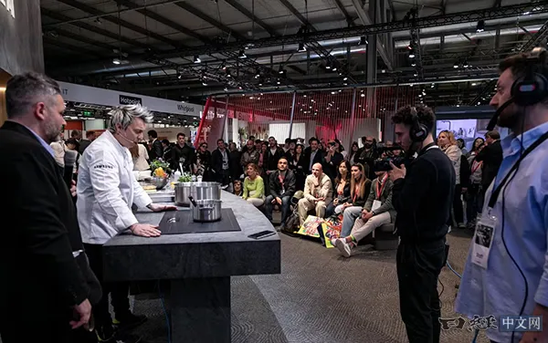 “AI將改變料理”,主打運用AI的三星展位聚集了許多人,義大利著名主廚進行了料理展示。