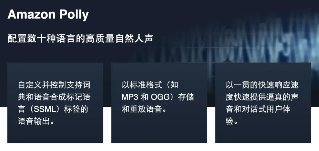 Amazon Polly 是AWS 提供的文字轉語音(Text-to-Speech, TTS)服務,它能夠將普通文字轉換成聽起來自然的人類語音。