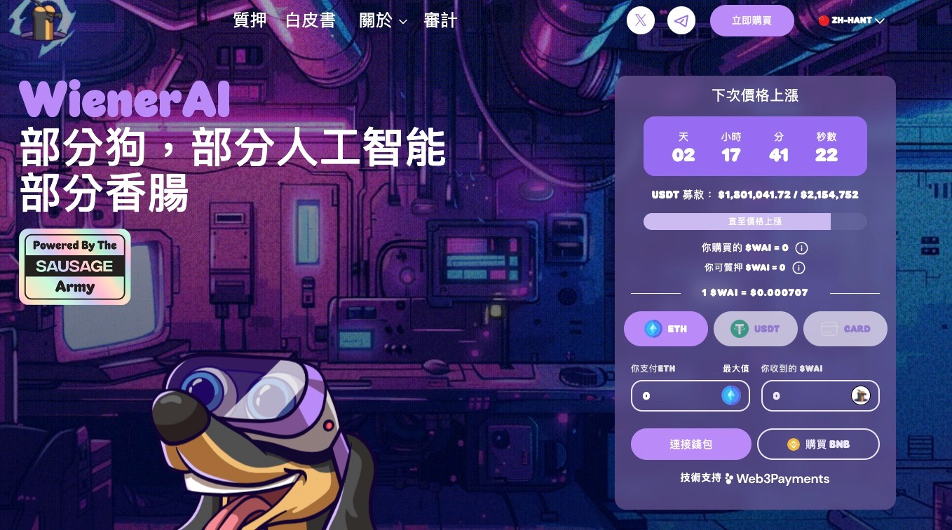 3. WienerAI($WAI)新人工智慧AI幣結合迷因幣,有潛力升100倍