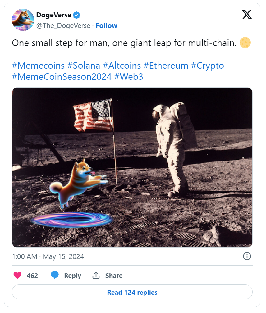 在2024年,DOGEVERSE將在以太坊、Polygon、BNB鏈、Solana、Avalanche和Base上運作,這是一個多鏈特性,支持者將推動價格。