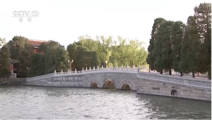 習近平在瀛台橋前迎接普丁。兩國元首邊走邊談,看亭台樓榭,賞萬物並秀。