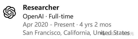 他從2020年4月就入職了OpenAI,如今已經是4年的「元老」了。