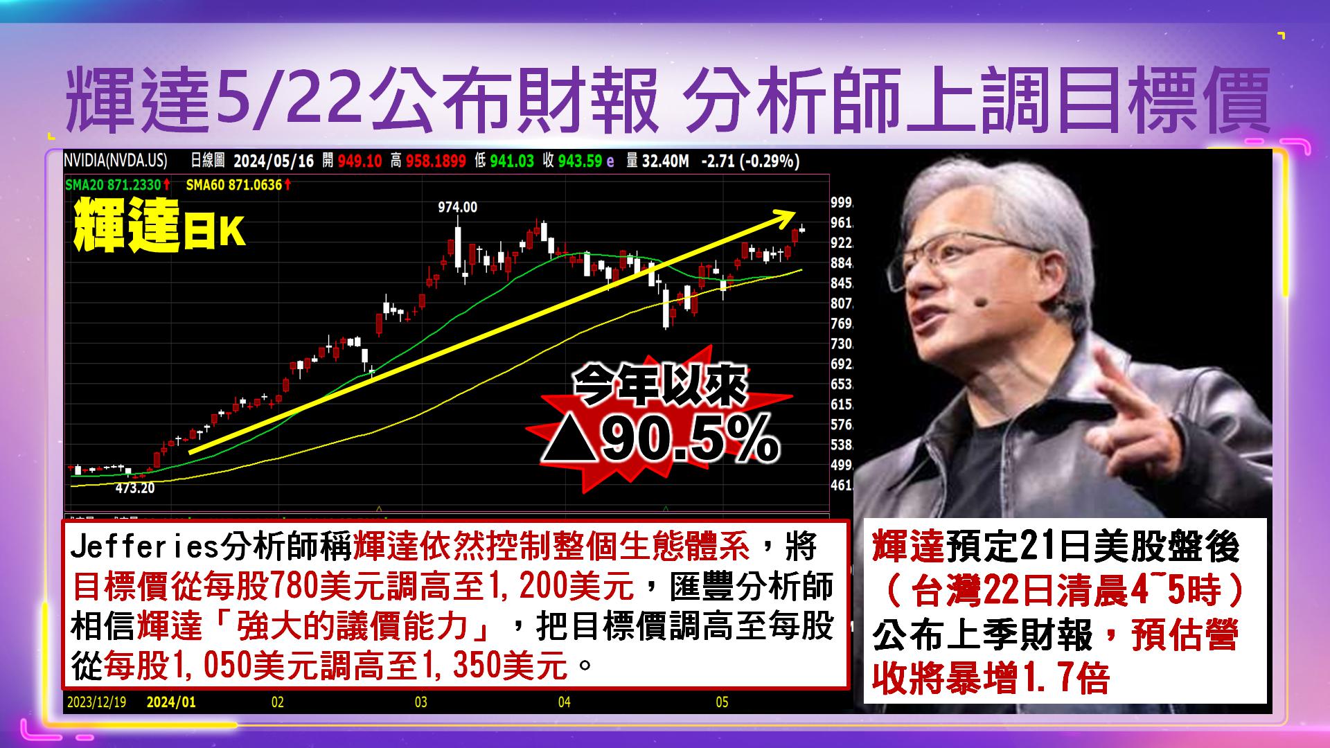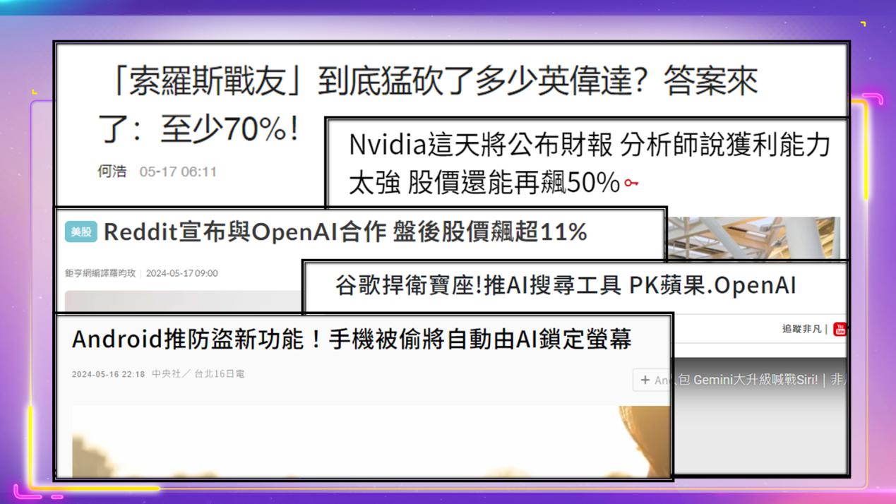 從穆拉提的發言,不難看出輝達GPU在OpenAI技術中的關鍵地位。輝達預計於5月22日發表財報,可謂大型科技股上季業績的「壓軸戲」,令市場高度期待。2024年以來(至5月13日收盤),輝達股價累計上漲逾82%,來到903.99美元。輝達2023會計年度第4季財報(至2024年1月28日),營收達221億美元,年增265%;每股純益(EPS)5.16美元,年增486%,營收、獲利皆優於市場預期,也為下週的業績發表,創造樂觀氛圍。