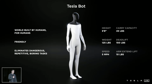 去年8 月的AI Day 上,特斯拉發佈人形機器人Optimus ,當時的說法是它身高1.72 米,體重56.7 千克,搭載特斯拉FSD 電腦和Autopilot 攝像頭,臉上配有屏幕,並且由40 個機電執行器控制四肢,它可以幫你買東西、干家務...... 做很多事情。特斯拉將用Dojo 超算對其進行訓練,讓它變得更加智能。