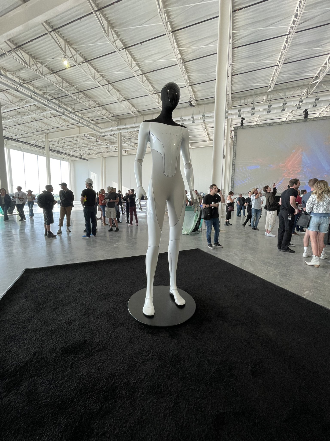 今天德州工廠的展示區,還真有一具Tesla Bot 屹立在展台上,但由於是靜態展示,所以通過圖片著實無法分清這到底是一台能說會動的機器人,還是只是一個模型......