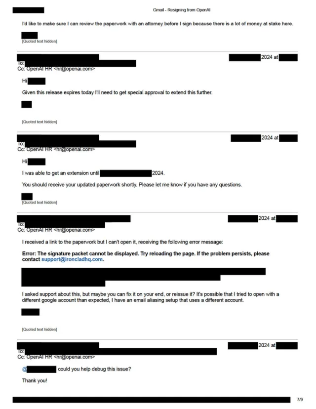 當今年春天離職的前員工,要求額外2-3週的時間尋求法律援助並審查檔案時,卻遭到了OpenAI的強烈反對。