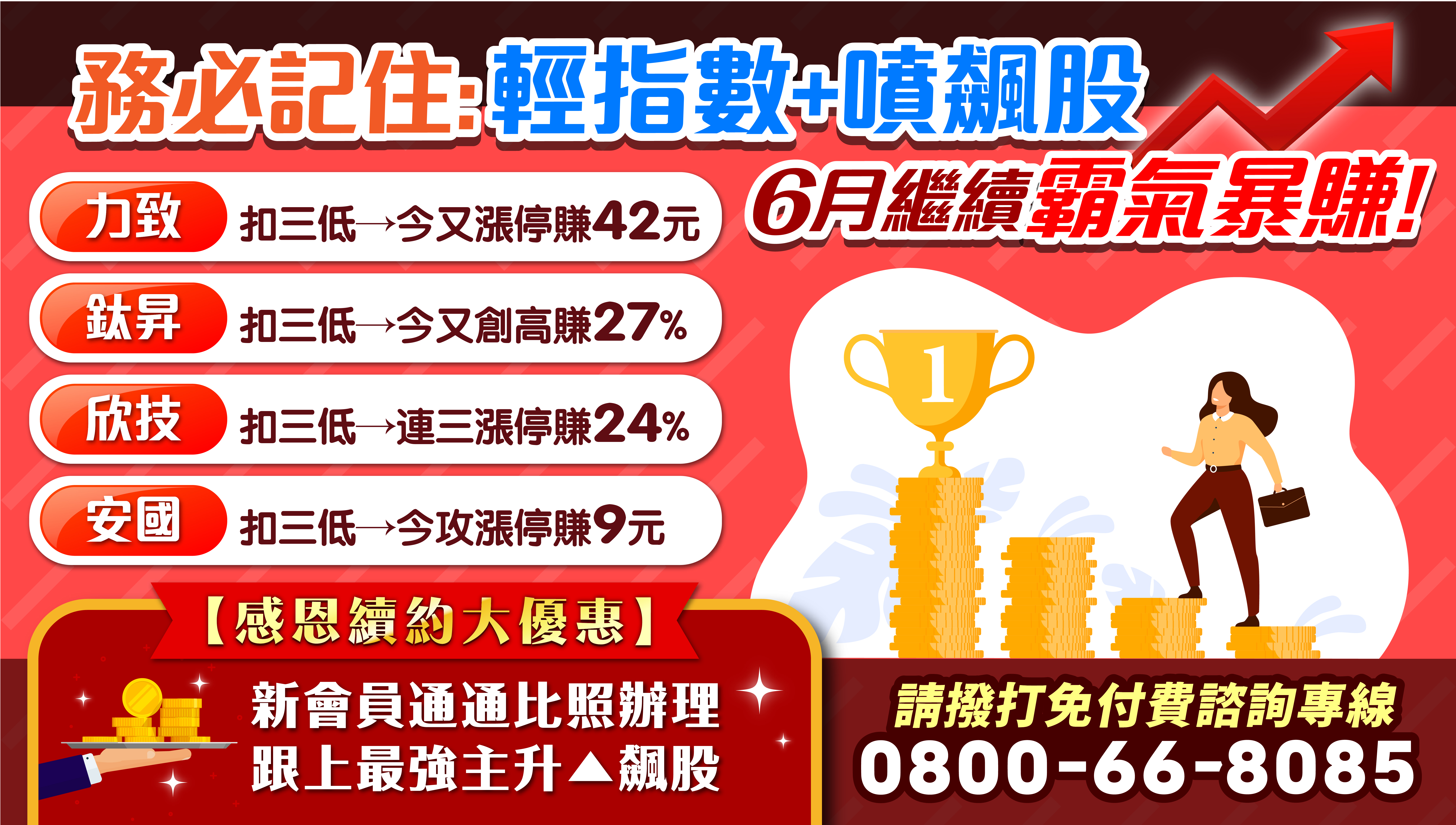 力致⊕、鈦昇27%、欣技3⊕、安國⊕!