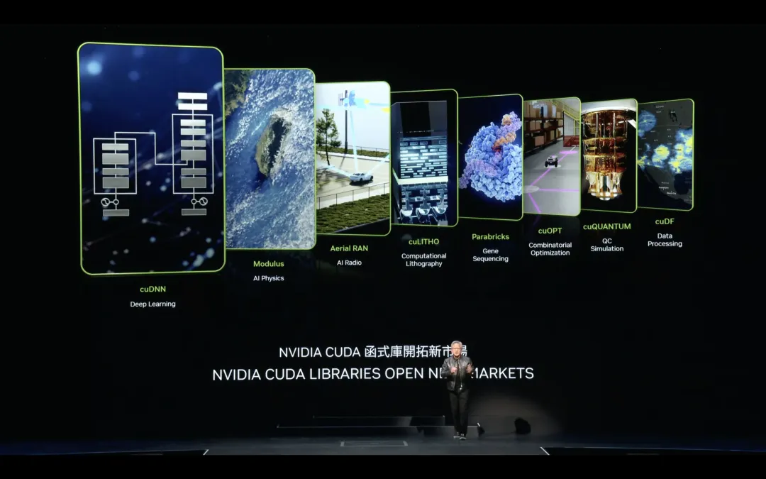 而其中,CUDA被黃仁勳大夸特誇。 「如果沒有我們精心打造的打造的各類特定領域的庫,全球深度學習科學家們就無法充分利用潛力。CUDA就像OpenGL之於電腦圖形學,SQL之於數據分析。」他說。