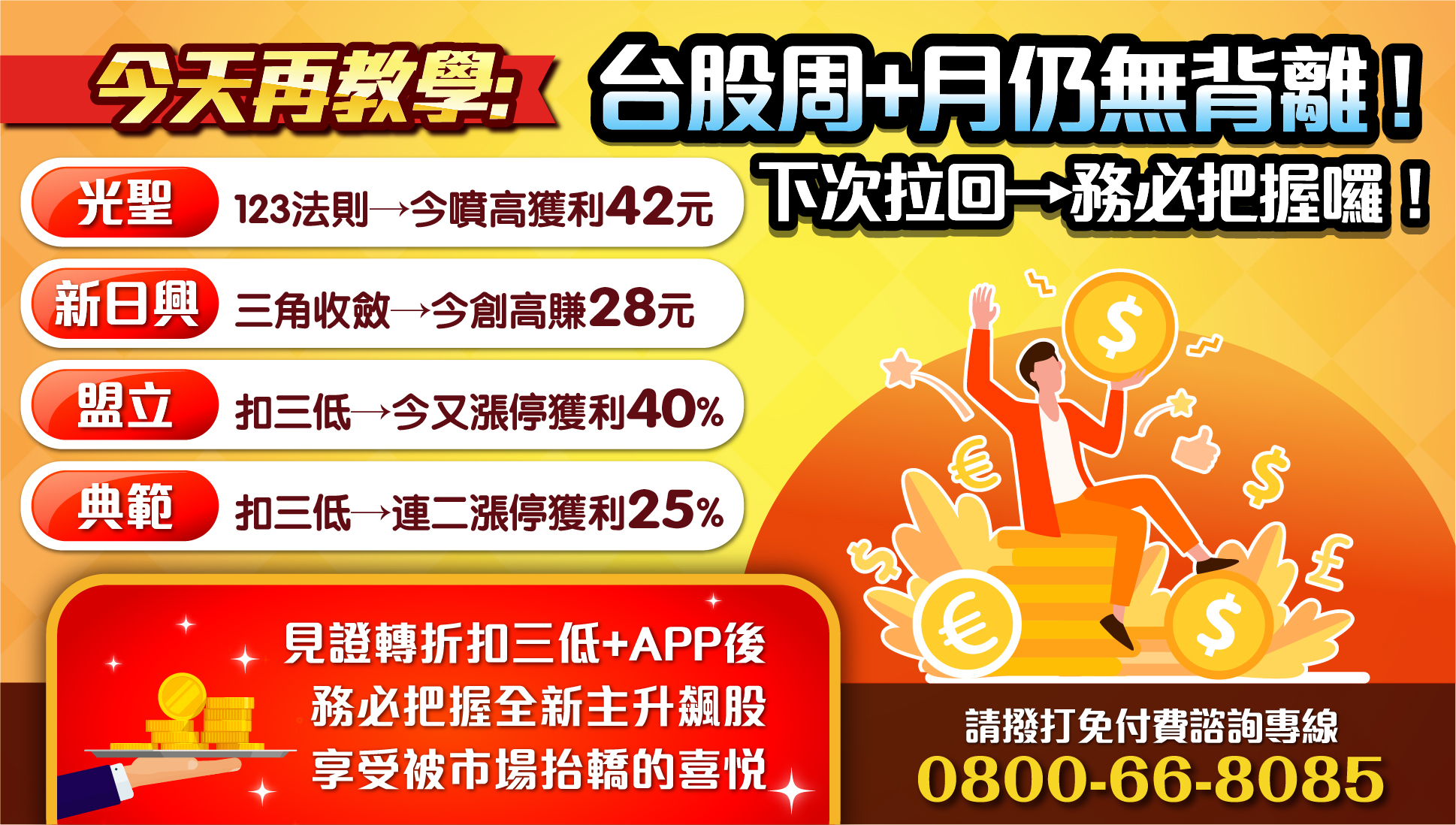 下次拉回→務必把握囉!廣運7⊕、典範2⊕、光聖42元、新日興28元!