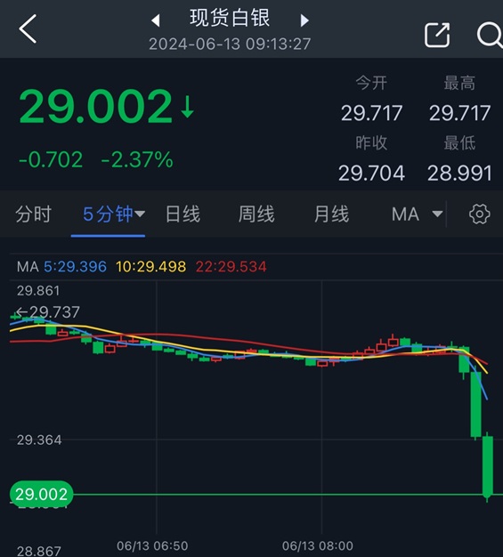 北京時間09:13,現貨白銀報29.00美元/盎司。