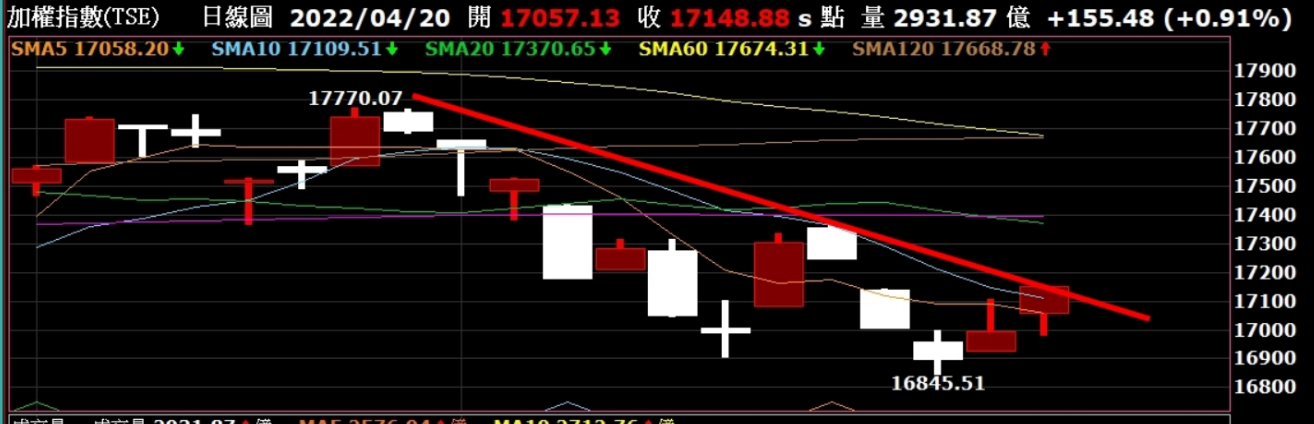 可以橫盤鬼混,就是今天低點 16983 不要破 ,也就是 17000 整,頂在這裡,撐過明天,周五,5日線就翻揚向上,就會是多方控盤了。