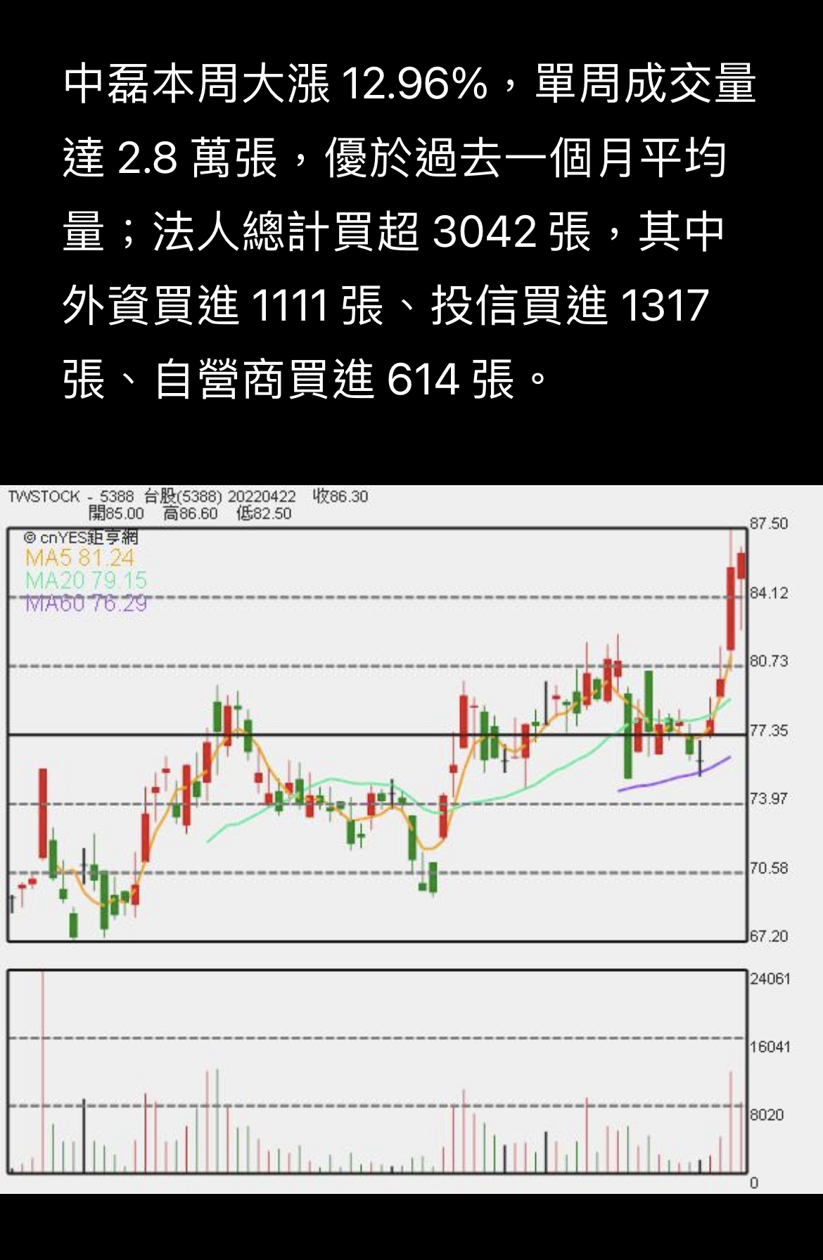 看圖說分明,鉅亨這篇新聞已經說出了原因,疫情擴散導致消費性電子需求放緩,原本缺晶片產能的網通族群趁機補上空缺,5G基地台 射頻元件 WIFI 6等都是這族群產品,股價補漲自然可期,其中又以三雄(智邦、智易、中磊)為指標,下週觀察法人籌碼是否續買來做進出場因應!