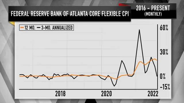 下圖黑線表示核心彈性CPI 3個月變化率,棕線表示自2016年以來的12個月變化率。