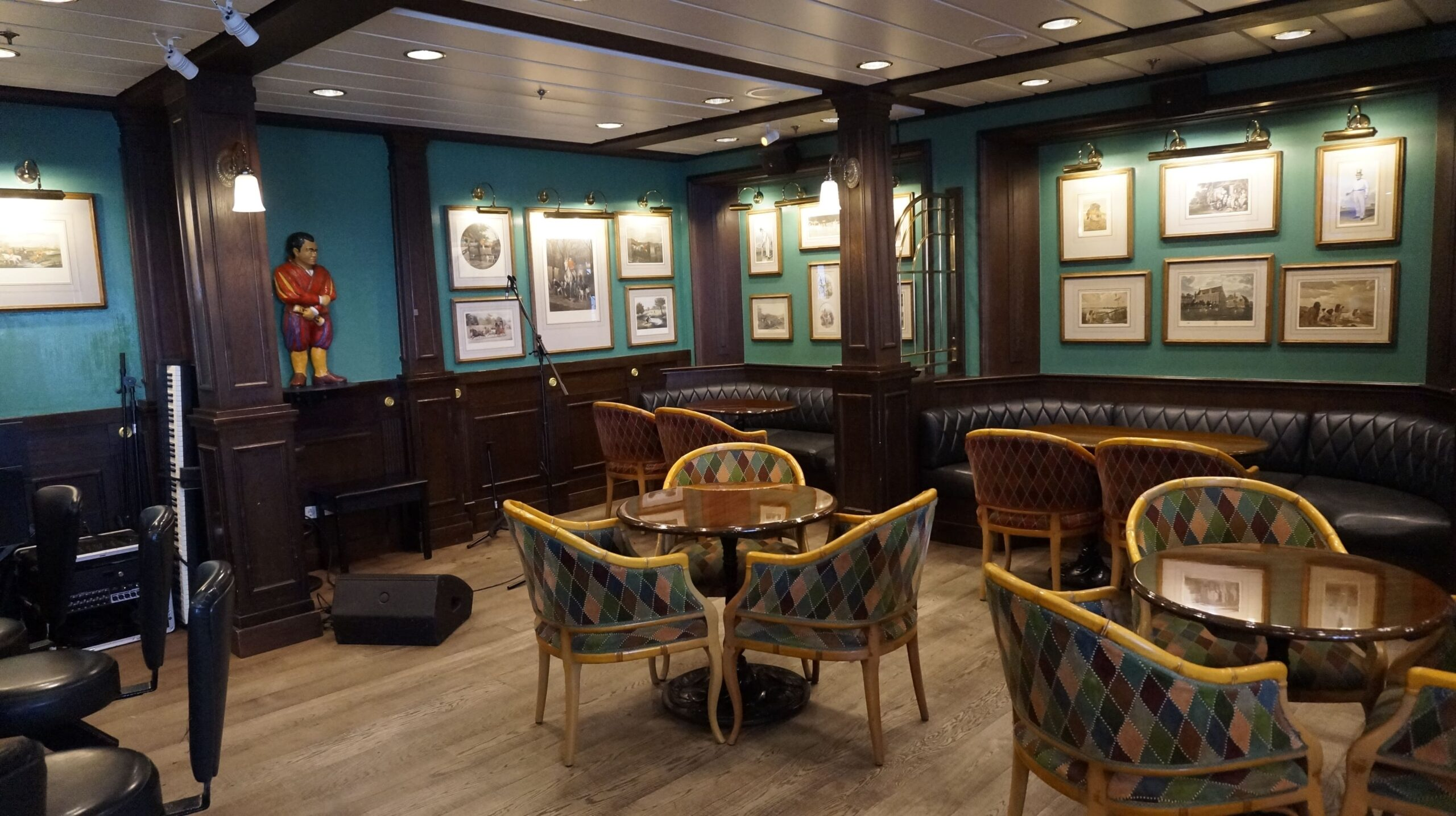 Henry's 酒吧可以說是挪威郵輪奮進號上的回憶復刻機!坐在拼接馬賽克圖騰的座椅聽著晚間的吉他鄉村音樂表演,屬於1970年代時的年輕回憶好像都一一湧現了。