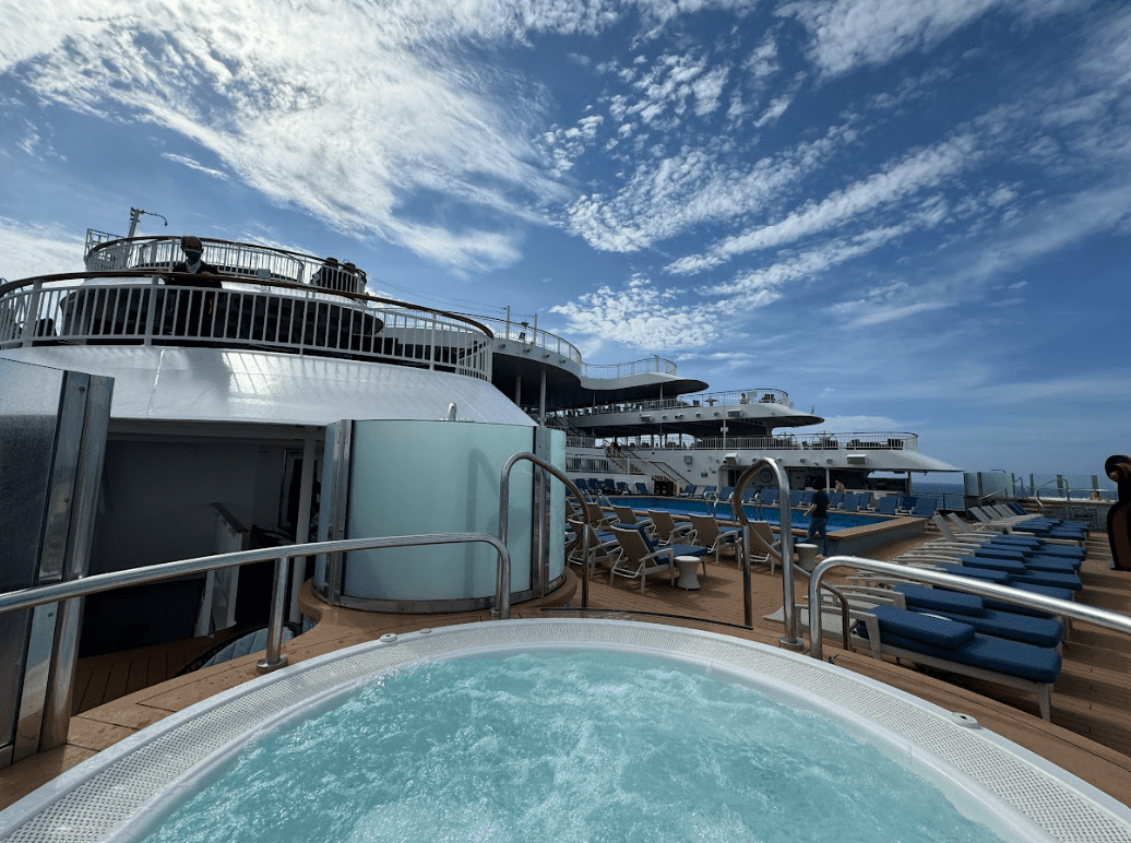 你有想過在全海景的浪漫空間下玩水、體驗SPA嗎?來到12樓甲板滿足你的願望吧~ 這裡擁有超寬敞的泳池,更打造多個舒適的溫水按摩浴缸,建議可以提早來到這裡,才有機會感受到這麼放鬆療癒的體驗。