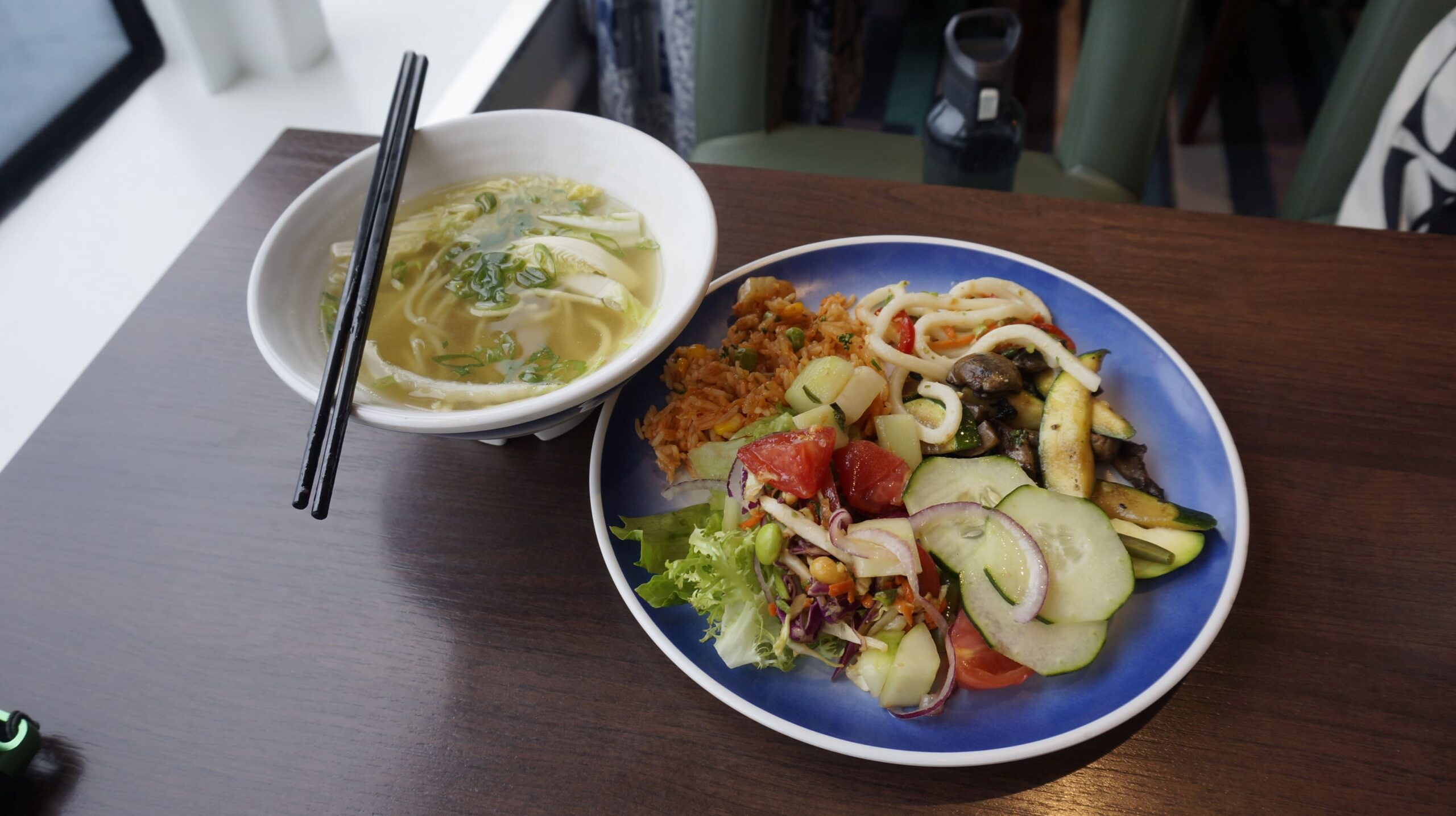 說到這個餐廳品項的多元度,即便是素食者來到這裡,都會陷入選擇障礙😂不管是清爽的生菜沙拉、酸辣的韓式炒飯,或是帶有滿滿家鄉味的特製台式湯麵這裡都能吃的到。