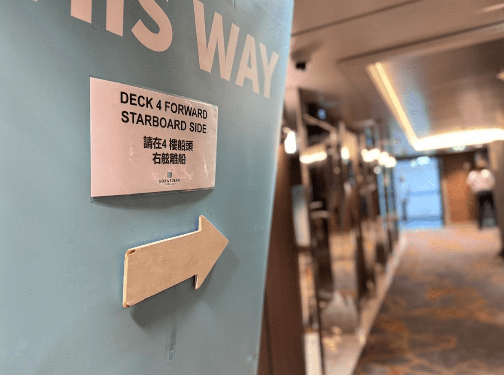 整個登船手續都處理好後,就是一連串的出境關卡,流程與搭飛機出國大致相同。整個程序都跑完後,這次的郵輪之旅就要正式展開啦!