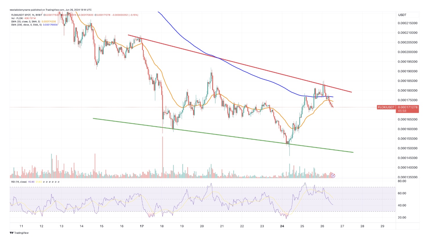 今天 FLOKI 的圖表看起來不太樂觀,考慮到該幣在過去一小時內的下跌,這並不令人意外。