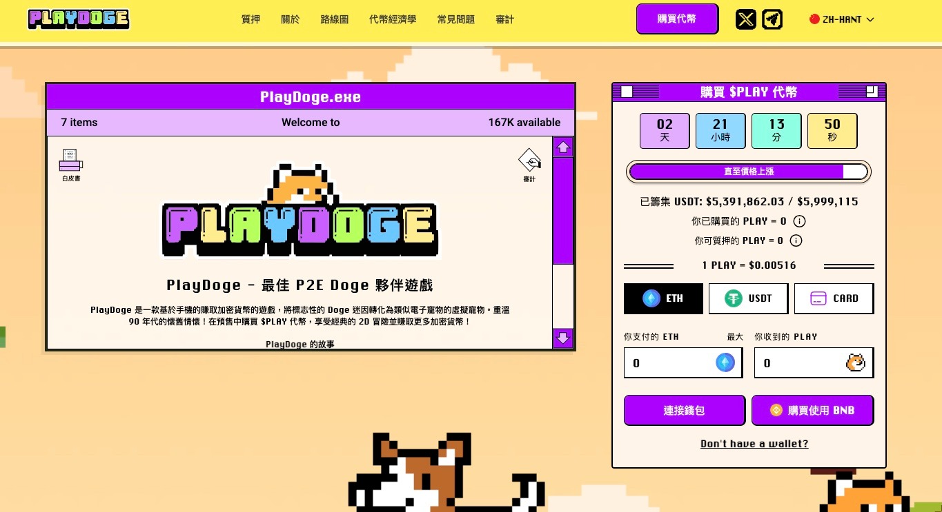 目前最熱門的加密貨幣專案之一是PlayDoge (PLAY),這是一款數字 Doge 寵物,融合了 90 年代的懷舊情懷和現代的 Play-to-Earn (P2E) 獎勵。PlayDoge 在預售的前 11 天籌集了超過535萬美元。