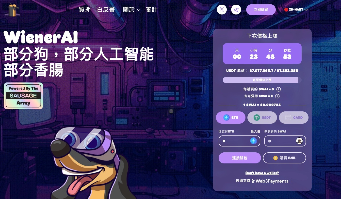 WienerAI 包含一個年收益率為226% 的質押協定,這為其快速發展的社區“香腸軍團”做出了貢獻。WienerAI ICO 非常成功,讓投資者能夠在 $WAI 代幣進入交易所之前提前獲得它們。