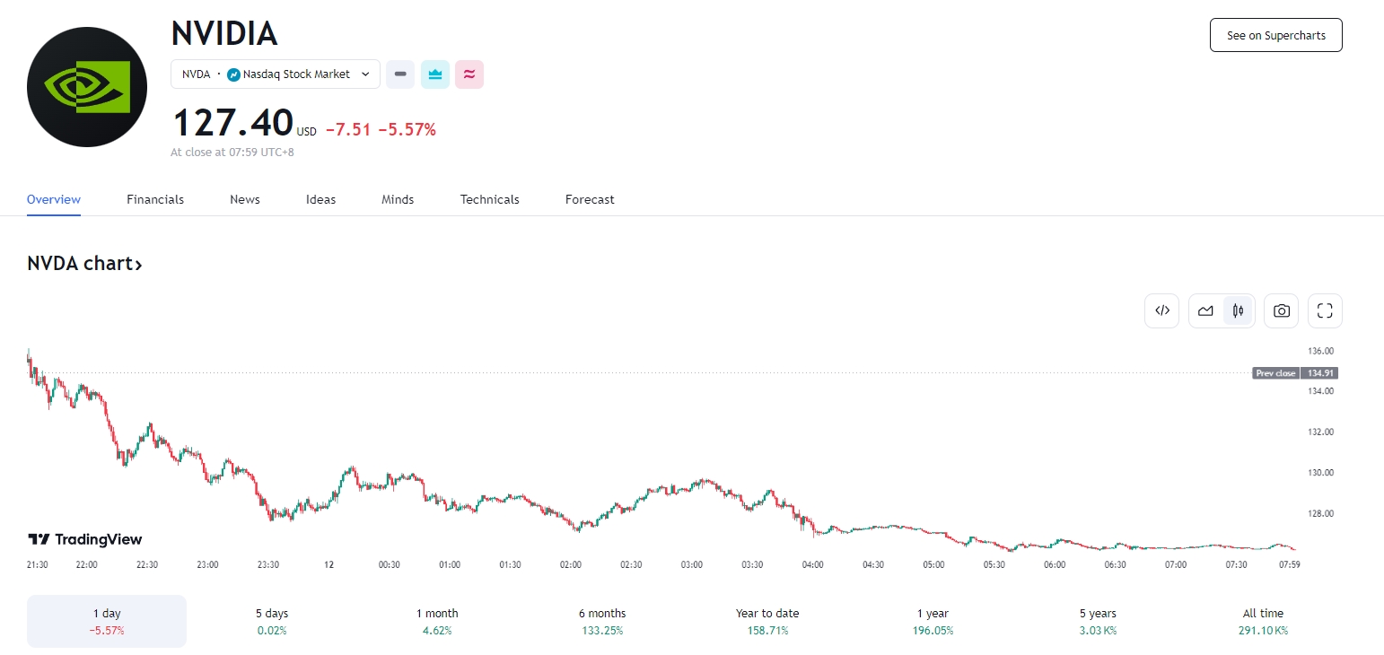 周四(7月12日)美股收盤,科技七巨頭(Magnificent Seven)慘遭交易員抛售,市值一夜蒸發近6000億美元。英偉達收跌5.57%,特斯拉跌8.44%。人工智能(AI)泡沫化的争論再次掀起,英媒對英偉達股價過熱展開分析。