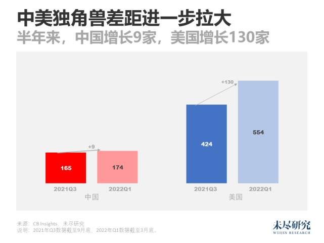 不僅如此,中國的獨角獸增長之勢開始放緩,而美國仍在加速擴張,印度則是異軍突起。 數據顯示,從去年9月底到今年3月底,半年時間,全球新增獨角獸企業246家。其中,中國淨增9家,美國淨增130家,而印度則新增15家。