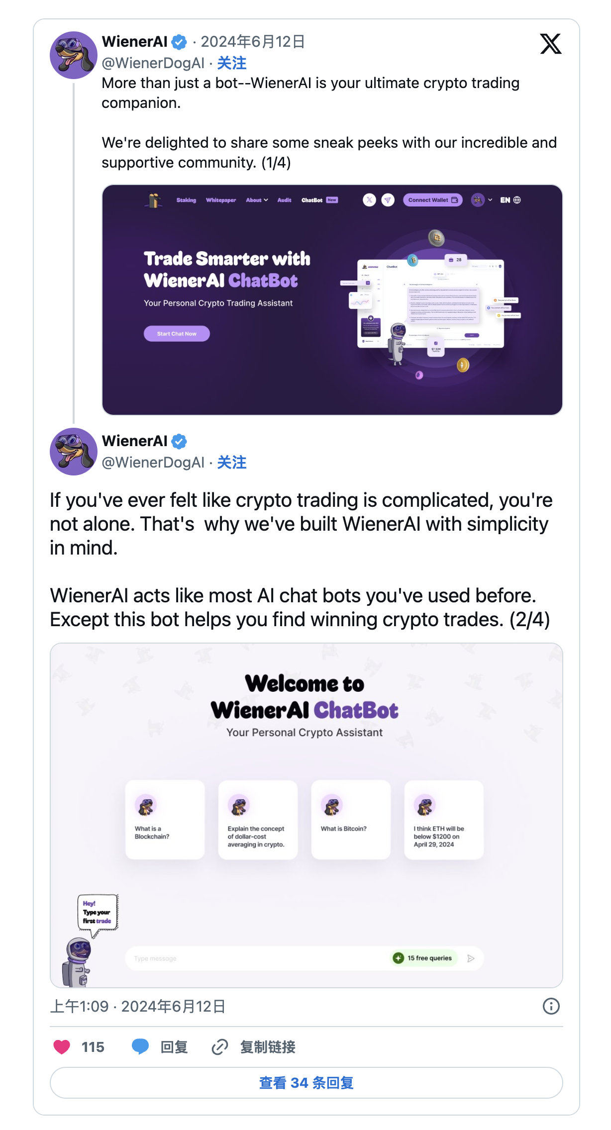 僅在兩個月內,即使在最近的市場低迷中,WienerAI以其先進的AI加密交易能力在加密領域引起了廣泛關注。